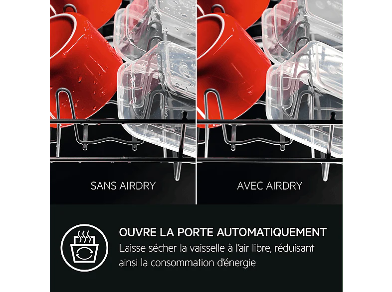 Grâce à AutoSense, le QuickSelect D détecte le degré de saleté de votre vaisselle pour déterminer le programme le plus adapté. Il lave ainsi chaque plat de la manière la plus écologique possible. De plus, la technologie AirDry permet de faire sécher la vaisselle à l’air ambiant. En effet elle ouvre automatiquement la porte pendant les 10 dernières minutes du cycle pour faire évaporer l’air chaud et pour sécher les plats et les verres par un courant d’air. En outre, le QuickSelect D est un appareil silencieux qui n’émet que 42 dB de bruit par cycle.