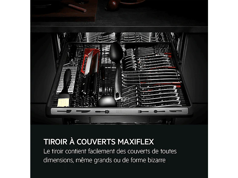 Ce lave-vaisselle volumineux s’installe en pose libre et offre tout ce dont on a besoin pour un nettoyage efficace . Il peut accueillir jusqu’à 14 couverts et son intérieur est personnalisable grâce au tiroir MaxiFlex et au panier QuickLift. Le tiroir est doté de séparateurs flexibles et d’une hauteur maximale pour garantir de l’espace pour n’importe quelle charge. Les couverts et les ustensiles de cuisine de toutes tailles, qu’ils soient petits, grands ou de forme irrégulière, s’y glissent sans problème. Grâce au panier QuickLift réglable en hauteur, tu bénéficies d’un confort supplémentaire pour charger ou retirer la vaisselle en un rien de temps.
