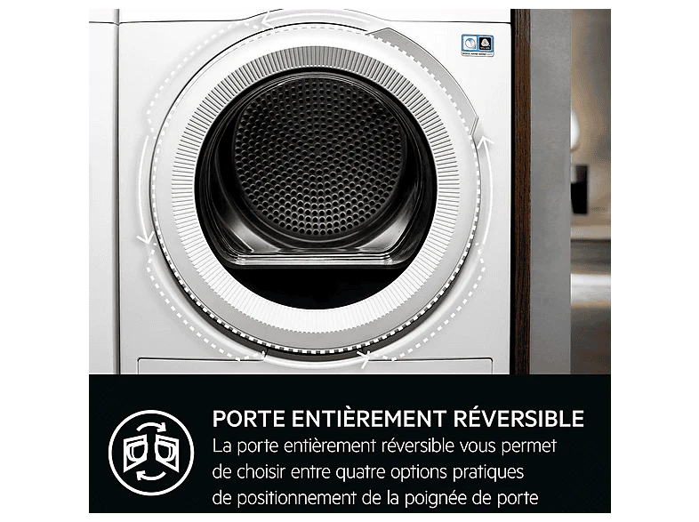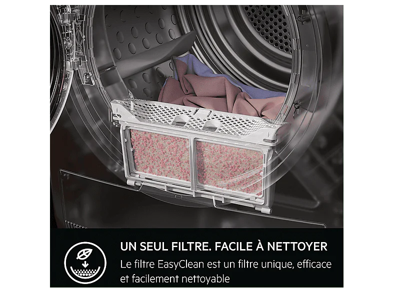 Doté d’une puissance de 800 watts, ce sèche-linge AEG allie efficacité énergétique et performances constantes. Grâce à la technologie de pompe à chaleur, le séchage se fait à basse température, ce qui réduit la consommation d’énergie tout en préservant la qualité de tes vêtements. Bien que le processus de séchage puisse prendre un peu plus de temps, cette technologie assure un soin optimal pour chaque fibre textile. Elle contribue aussi à la durabilité de l’appareil, pour un usage fiable et respectueux à long terme.