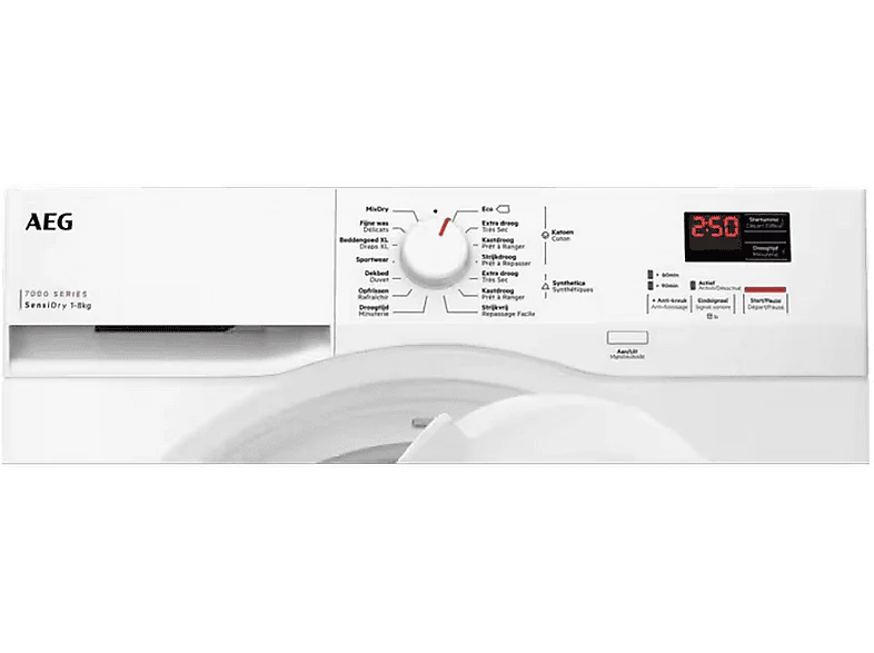 Ce modèle d’AEG propose 6 programmes pour sécher efficacement tout type de linge. Par exemple, le programme MixDry te permet de sécher en une seule fois les textiles en coton et les matières synthétiques, sans avoir à les trier au préalable. De plus, les capteurs PreciseDry analysent le taux d’humidité dans le tambour et adaptent automatiquement la durée du cycle ainsi que la consommation d’énergie. Tu obtiens ainsi un séchage précis, tout en économisant du temps et de l’électricité. Pour encore plus de flexibilité, ce sèche-linge est équipé d’une fonction départ différé, idéale pour programmer le lancement du cycle au moment qui te convient le mieux.