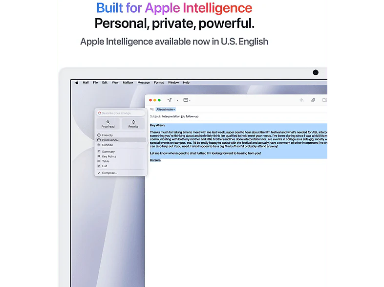 Disponible en sept couleurs éclatantes, cet ordinateur de bureau tout en un affiche un design extra-fin, rehaussant le style de n’importe quelle pièce. L’écran Retina 4,5K de 24 pouces offre 500 nits de luminosité et prend en charge un milliard de couleurs. Redoublez d’efficacité grâce à la puce Apple M4. De la retouche photo à la création de présentations en passant par le gaming, elle vous évite tous les obstacles. Une caméra 12MP Center Stage, trois micros de qualité studio et six haut-parleurs avec Audio spatial vous permettent de rester dans le cadre et de vous faire parfaitement entendre.