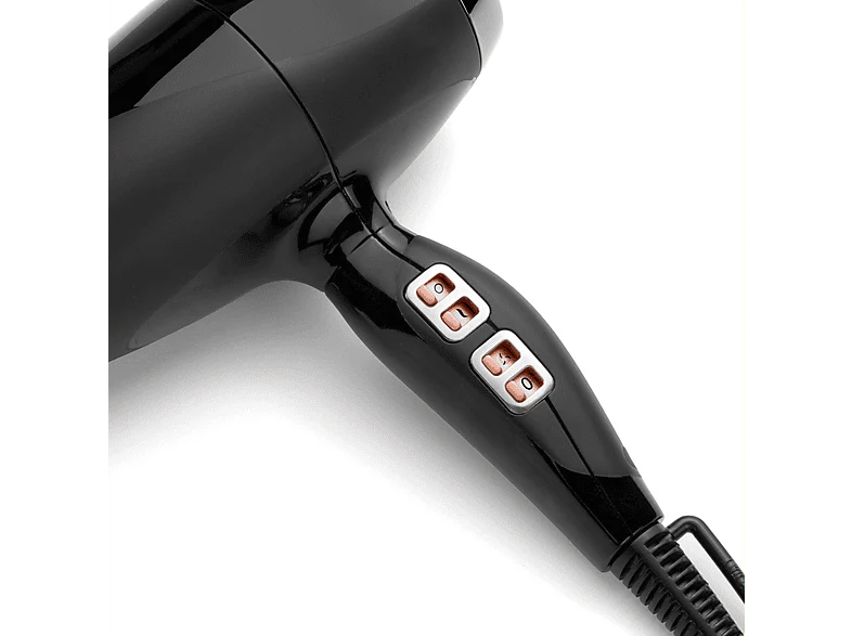 Le sèche-cheveux Air Pro 2300 de Babyliss avec sa finition noire brillante est doté d’un design élégant italien et de magnifiques détails dorés. Il est équipé d’un moteur professionnel et possède une puissance de 2300 watts pour un séchage optimal des cheveux. Le flux d’air puissant et contrôlé garantit un séchage rapide et en douceur. Il est livré avec 3 embouts d’air qui dirigent l’air chaud avec précision sur chaque mèche de cheveux. Le grand diffuseur rond permet de donner davantage de forme aux boucles naturelles. Il dispose d’une fonction air froid grâce à laquelle tu termines ton brushing pour un effet lisse. Tu choisis parmi 3 vitesses et 2 réglages de température pour un brushing totalement contrôlé. Le cordon électrique de 2,8 mètres t’offre une grande flexibilité de mouvements.