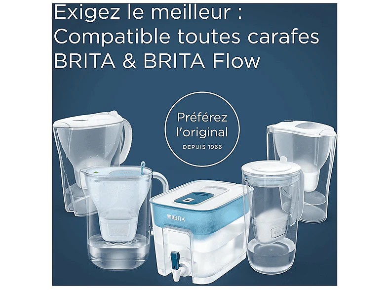1 cartouche filtrante a une capacité allant jusqu’à 150 litres en 4 semaines et aide à réduire l’utilisation de bouteilles en plastique. Avec ce pack de 2 filtres, tu profites de 8 semaines d’eau pure et filtrée. Les cartouches sont produites en Europe et sont composées à 50 % de matériau biosourcé (couvercle et corps) et sont recyclables. Grâce au système BRITA PerfectFit, elles s’adaptent à toutes les carafes BRITA ainsi qu’au BRITA Flow et garantissent une filtration fiable. Pour les régions avec une eau dure à très dure, tu choisis le KALK EXPERT, qui protège 50 % plus efficacement contre le tartre que la variante All-in-1.