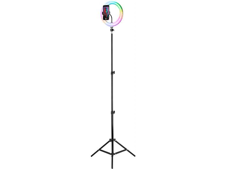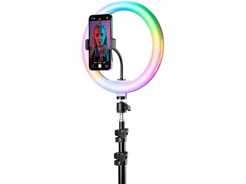 Le SELFIE RING PRO MULTICOLOR est un anneau LED RVB avec trépied extensible jusqu’à 1,60 m de hauteur, idéal pour réaliser des selfies ou des vidéos. L’anneau LED de 10’’ offre 18modes d’éclairage avec activation par télécommande. Il est équipé d’un support universel pour smartphone pivotable pour des plans dignes d’un réalisateur! Grâce à la télécommande Bluetooth®, incluse avec le produit, vous pouvez prendre des selfies ou faire des vidéos même à distance.