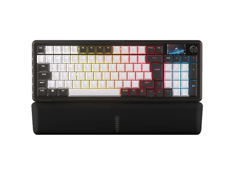 Le 96 Dual Tone (Azerty) de Corsair est un clavier de jeu filaire noir au format compact. Il est équipé de commutateurs Corsair MLX pré-lubrifiés et sans oscillation, compatibles avec les commutateurs 3 et 5 broches. Il dispose également d’un écran LCD intuitif que tu peux personnaliser à ta guise avec des animations, des statistiques et une prise en charge de l’intégration des jeux. La technologie Corsair Axon garantit une réponse et une saisie ultra-rapide avec un hyper-polling jusqu’à 8 000 Hz. De plus, tu peux configurer jusqu’à 20 effets d’éclairage RVB par touche via le hub Web Corsair. Enfin, ce clavier est équipé d’un connecteur USB 3.0 Type-A, avec un câble Type-C détachable, pour le connecter facilement à ton PC et à ta console.