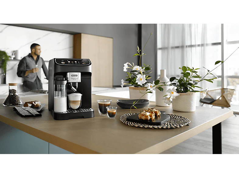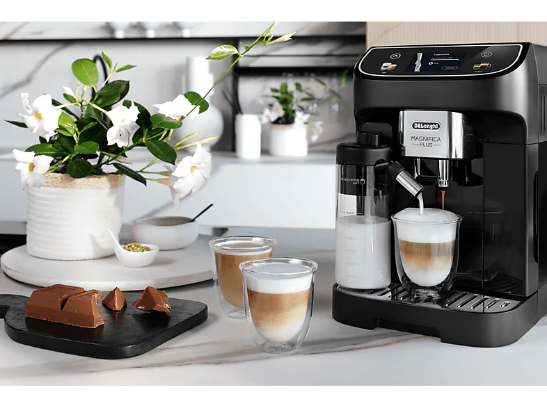 La Magnifica Plus combine une pression de pompe de 15 bars et 1450 watts de puissance pour une extraction uniforme et savoureuse. Le moulin à café intégré broie les grains immédiatement avant chaque préparation, préservant un arôme optimal. Tu préfères le goût du café moulu ? Aucun souci. Tu peux t’en servir sans problème grâce à l’entrée séparée. Tu restes ainsi flexible dans ton utilisation, sans compromis sur le goût ou la qualité.