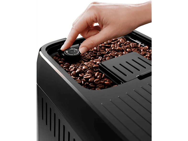 La De’Longhi Magnifica Plus ECAM320.60.B est une machine à expresso entièrement automatique au design noir épuré saura séduire tous les amateurs de café. Mesurant 50 x 29 x 40 cm pour 5 kg, elle s’installe solidement sur ton plan de travail. Son réservoir d’eau de 1,9 litre te permet de préparer plusieurs cafés sans interruption, tandis que le compartiment à grains de 250 grammes suffit pour une utilisation quotidienne. La double sortie te laisse préparer 2 tasses simultanément, pratique lorsque tu reçois des invités.