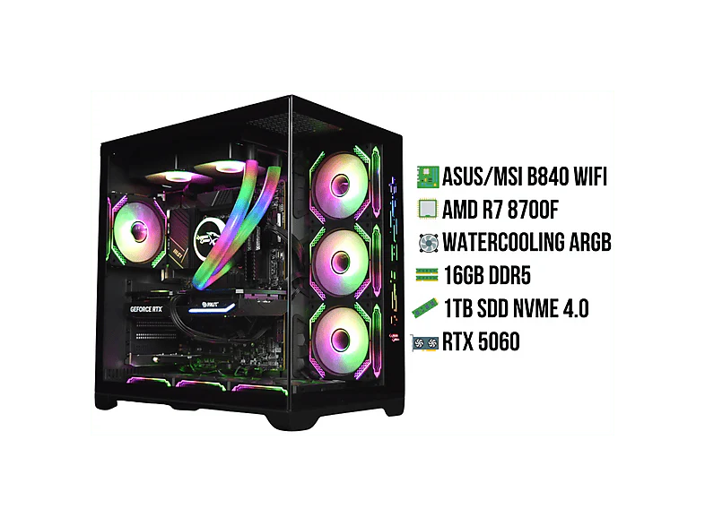 Le X EDT LVL 1a BKrV4 d’ExtremeGamer se distingue immédiatement par son design aquarium noir, accentué par un éclairage RGB personnalisable. Sous le capot, le processeur AMD Ryzen 7 8700F et les 16 Go de RAM à 6000 MHz offrent des performances rapides et stables, même lors de sessions de jeu intensives. Le SSD de 1 To fournit une large capacité de stockage et garantit des temps de chargement très courts. L’ensemble forme une machine aussi agréable à regarder qu’efficace à utiliser.
