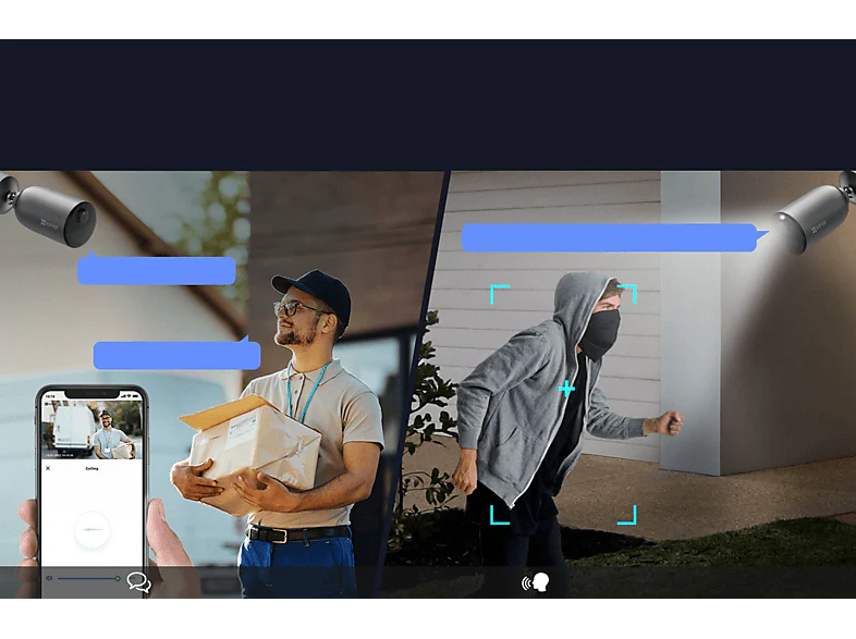 Intégrant un capteur PIR et l’algorithme de détection de forme de personne, la EB3 est intelligente et ne t’enverra des notifications que lorsqu’elle détecte une présence humaine. Tu la connectes et l’opères via l’appli EZVIZ que tu installes sur son Smartphone ou/et ta tablette. Elle répond aux commandes vocales et est équipée d’un système de communication bidirectionnel qui te permet de communiquer à distance avec les personnes présentes dans le champ de vision, tel qu’un livreur. Toutes les images capturées sont enregistrées sur la carte MicroSD de 256 Go maximum (vendue séparément). Cependant, tu peux souscrire à un abonnement avec EZVIZ pour enregistrer toutes tes données cryptées dans le cloud sans limite.