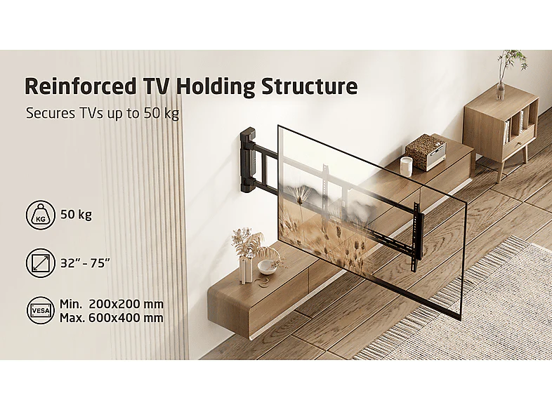 Accroche n’importe quel écran de téléviseur mesurant entre 32 et 75 pouces à ton mur de manière sécurisée grâce à ce support mural électrique ITV 800 noir d’Isy. Solide, il peut supporter une charge maximale de 50kg. Il est inclinable et pivotable, afin que tu profites toujours d’un angle de vue optimal. Tu contrôles sa position via la télécommande incluse.