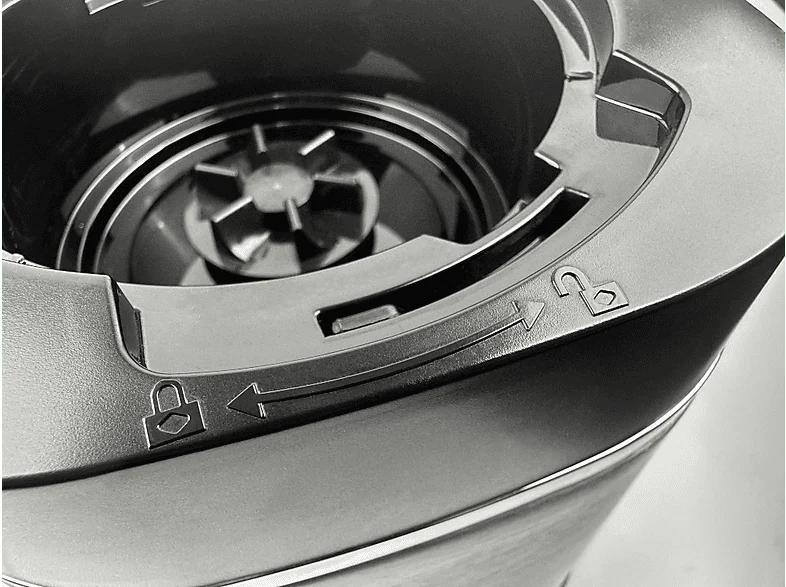 Pour une utilisation sûre, tu ne peux démarrer le blender qu’une fois le bol en verre correctement verrouillé avec un léger mouvement de rotation. Après utilisation, il suffit de tourner le bol pour le déverrouiller et le retirer facilement. De plus, les pieds antidérapants de l’appareil garantissent une stabilité optimale pendant l’utilisation.