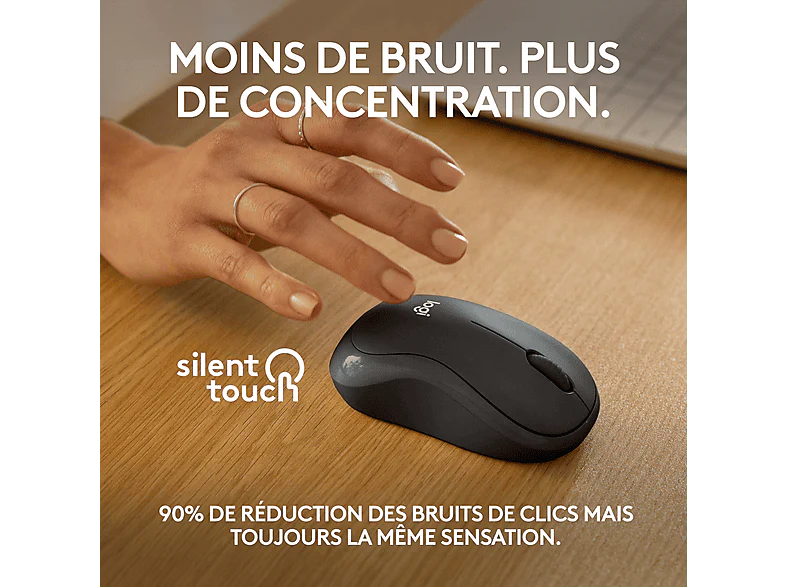 La souris sans fil M240 Silent Graphite de couleur noire de la marque Logitech te permet de naviguer silencieusement avec sa conception ergonomique et une connexion sans fil fiable.