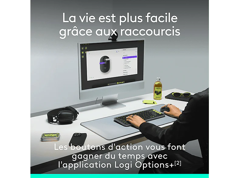 Ajoute une touche de confort et de design à ton bureau avec la souris sans fil Pop de Logitech en finition graphite. Avec ses courbes douces, elle se cale au creux de ta main. Pourvue de la technologie Silent Touch qui élimine 90 % des bruits de clics, la souris Pop deviendra ton accessoire préféré de bureautique. Elle fonctionne via Bluetooth et se connectera à ton ordinateur ou autre plateforme sans effort avec une portée de 10 m. En un clic, tu pourras passer d’un appareil à un autre.