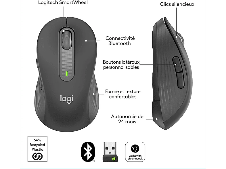 Passez à un défilement plus intelligent, un confort amélioré et davantage de productivité. La souris Signature M650 est dotée du défilement SmartWheel qui offre précision ou rapidité dès que vous en avez besoin. Un choix de tailles adapté à toutes les mains, qu’elles soient petites, grandes ou gauches, assure que chacun trouvera son bonheur. Une connectivité sans fil fluide, des clics silencieux, des boutons latéraux personnalisables et une forme profilée assurent confort et productivité au fil des heures.