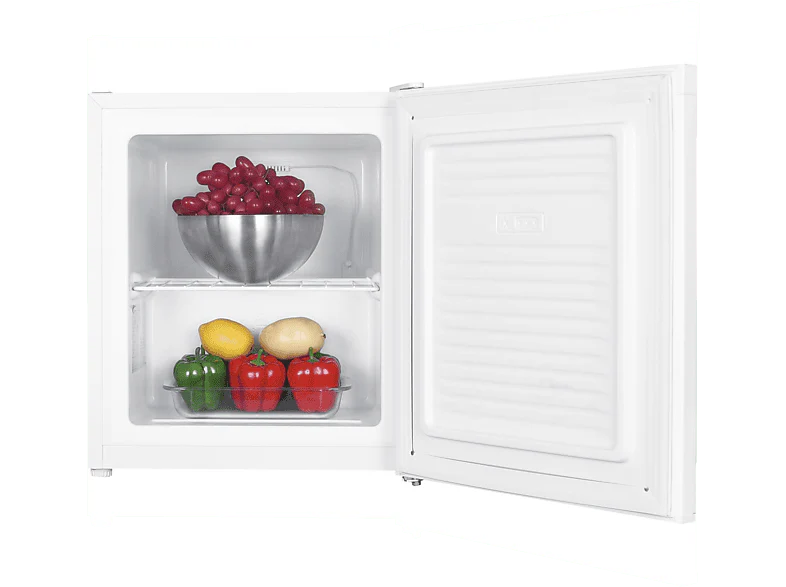 Ce petit congélateur dispose d’un seul compartiment avec un volume total de 33 litres. À l’intérieur, il est équipé d’une grille pour diviser l’espace de rangement en deux et pour ranger efficacement tes ingrédients. Le compresseur régule la température du compartiment de congélation, et tu la contrôles facilement à l’aide d’un petit bouton rotatif En cas de panne de courant, ce congélateur conserve sa température interne pendant 7,5 heures.