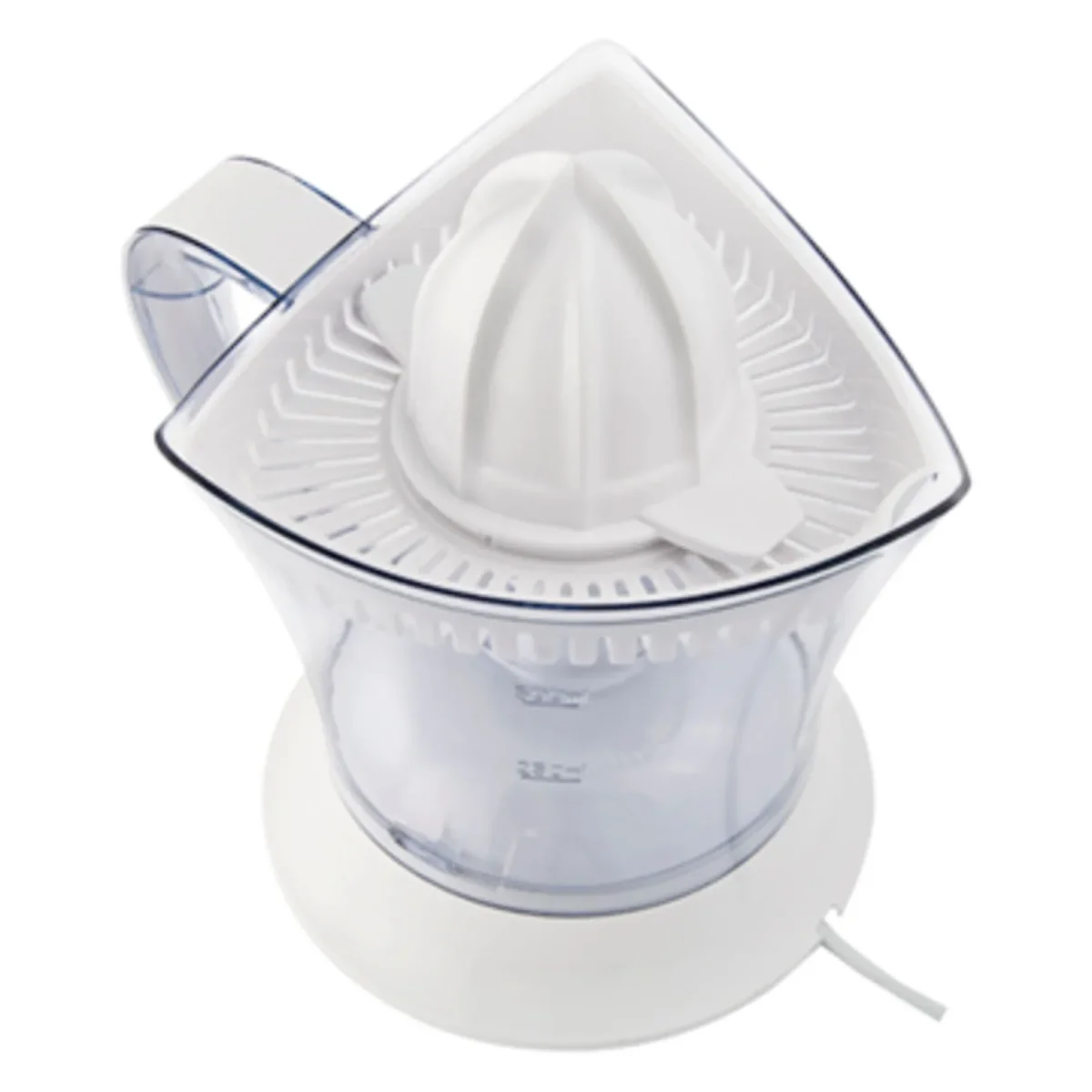 Ce petit presse-agrume se compose d’un pichet transparent et d’un couvercle intégrant le presse-agrume de couleur blanche. Il est fabriqué en plastique robuste facile à nettoyer. Le pichet à jus a une capacité de 500 ml qui te permet de presser facilement assez de jus pour une famille de 4. Le filtre à pulpe récupère la pulpe et les pépins pour que tes jus soient limpides et sans pulpe. Tu mélangeras différents agrumes, oranges, citrons, pamplemousses, mandarines pour obtenir des jus vitaminés aux saveurs variées.