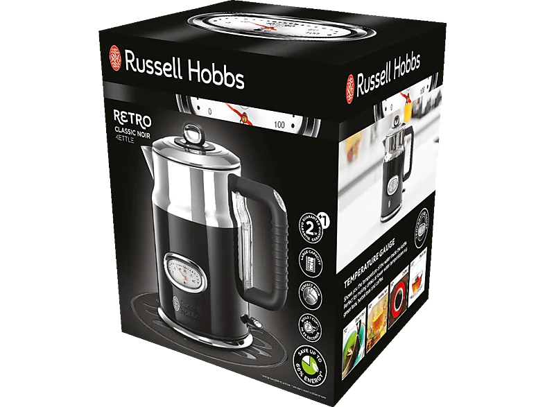 Extrêmement élégante, la bouilloire Retro Noir Classic de Russell Hobbs allie un design chic et rétro avec une multitude de fonctions modernes et pratiques, et volera rapidement la vedette à toutes les autres bouilloires