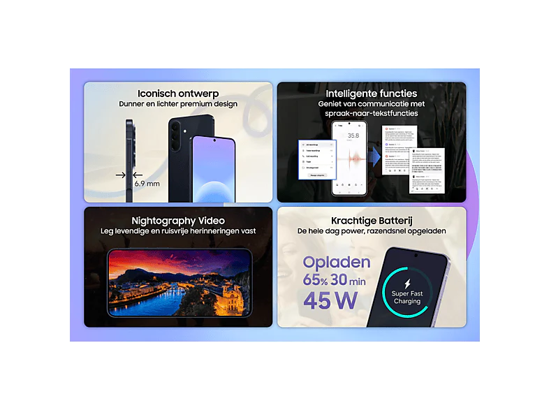Le Samsung Galaxy A57 5G dans son élégante couleur grise, est un smartphone puissant et moderne intuitif et pratique à utiliser au quotidien. Léger (176 g), il est équipé d’un écran Super AMOLED Plus lumineux de 6,7 pouces (17,02 cm) qui, grâce à sa résolution de 2340 × 1080 pixels et à son taux de rafraîchissement fluide de 120 Hz, garantit des images nettes, des couleurs éclatantes et une fluidité d’utilisation optimale. Avec une capacité de stockage généreuse de 128Go et 8 Go de RAM, tu disposes de l’espace et de la rapidité nécessaires pour toutes tes applications, photos et vidéos. Le processeur Samsung Exynos 1680 assure des performances fiables, même en multitâche intensif. Le système de caméra intégré (3 à l’arrière et 1 à l’avant) offre une haute résolution et des fonctionnalités intelligentes pour sublimer tes photos et vidéos. Pour faciliter tes tâches quotidiennes Le Galaxy A57 dispose aussi de la traduction en temps réel et de l’affichage Full IA. La batterie de 5000 mAh est conçue pour une utilisation prolongée et prend en charge la charge rapide via USB-C PD de 15 à 45 watts. Grâce à l’alliance d’un matériel performant et d’une technologie intelligente, le Galaxy A57 est un choix idéal pour ceux qui recherchent qualité, style et facilité d’utilisation. L’édition Enterprise bénéficie d’une politique de mise à jour plus étendue pour la continuité des activités et intègre Samsung Knox garantissant des options de sécurité et de gestion d’accès supplémentaires destinées aux services informatiques.