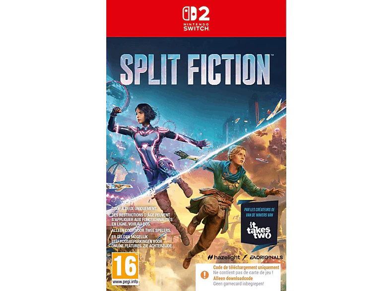 Explore de nombreux mondes magiques avec un ami dans Split Fiction pour la Switch 2. Ce jeu à 2 joueurs te plonge dans la peau d’auteurs qui se perdent dans leurs propres histoires par accident. L’un aime écrire sur la fantasy, l’autre sur la science-fiction. Parviendront-ils à surmonter leurs différences et à travailler ensemble ? Pendant ce temps, une société malveillante tente de voler leur travail et de s’en attribuer les mérites. Crée des plateformes, résouds des puzzles et gagne des combats à travers les niveaux et pour trouver le chemin de la maison. Ce jeu est conçu par les créateurs de It Takes Two et A Way Out.