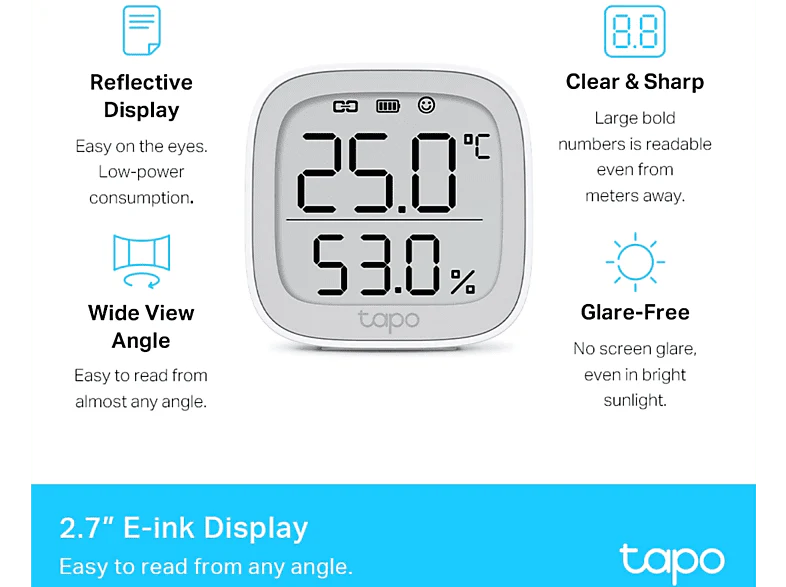 TAPO TAPO Capteur d’humidité et de chaleur intelligent (T315) Capteur d’humidité Blanc