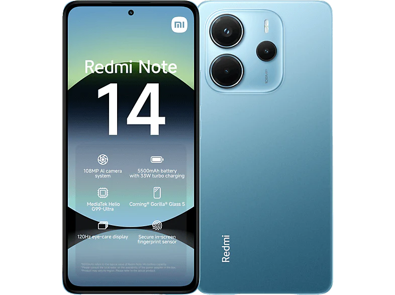 Le Xiaomi Redmi Note 14 4G en Ocean Blue est un smartphone élégant et puissant qui te permet de prendre de magnifiques photos. En effet, il est équipé d’un système d’appareil photo AI de 108 MP de haute qualité pour des détails nets et des photos de nuit impeccables. Ses algorithmes RAW ont d’ailleurs été affinés, préservant plus de détails et rendant les photos de nuit encore plus magiques. De plus, tu peux zoomer jusqu’à 3x sans perte de qualité, ce qui te permet de prendre des photos détaillées même à longue distance. L’écran amoled de 6,67 pouces (16,94 cm) donne vie à tes médias préférés, tandis que son puissant processeur MediaTek G99 Ultra et sa mémoire vive de 8 Go te permettent d’utiliser toutes les applications avec aisance. De plus, avec ses 256 Go, ce smartphone offre un espace de stockage suffisant pour tous tes fichiers et tes applications, que tu peux étendre jusqu’à 1 To avec une carte microSD disponible séparément. Enfin, grâce au verre Corning Gorilla Glass 5, l’écran résiste aux chutes et aux rayures, et le smartphone est étanche aux éclaboussures selon la norme IP54.